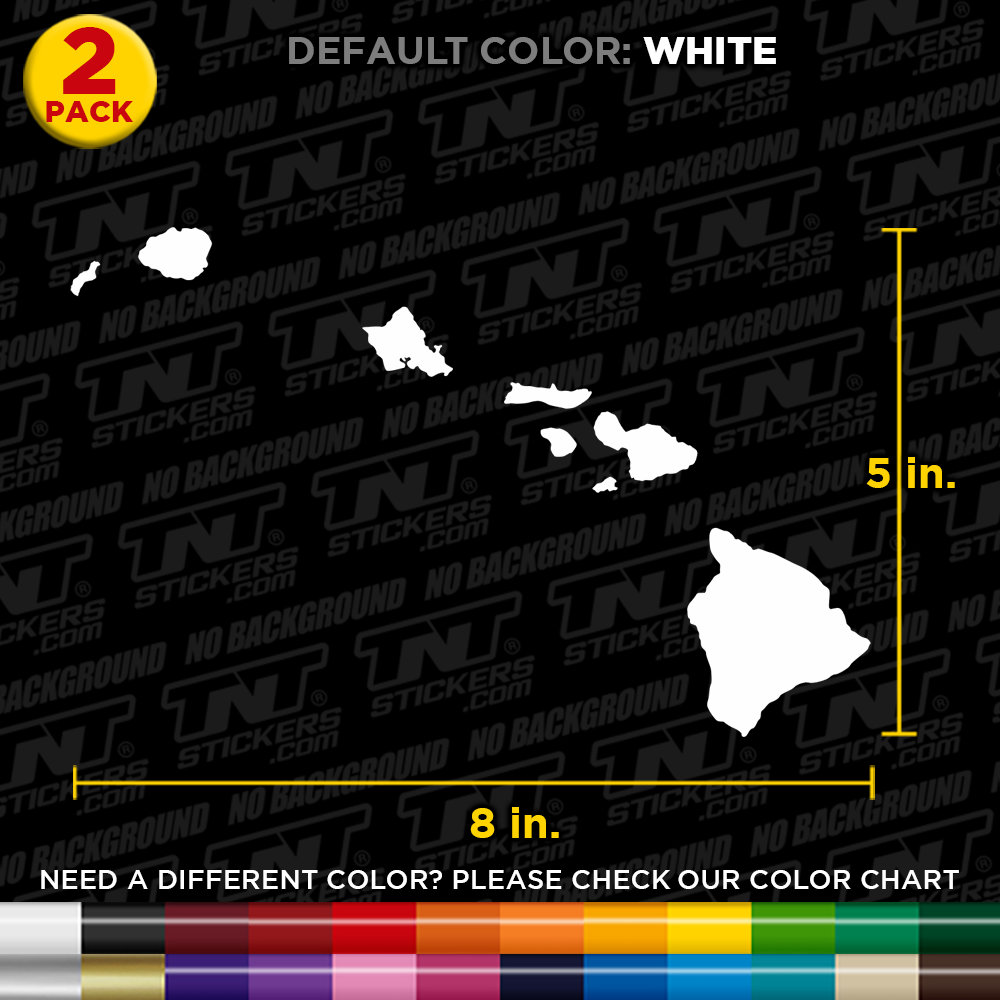 Set of 2 Hawaii Island Maps Cut Vinyl Decal Sticker | 8 x 5 in.